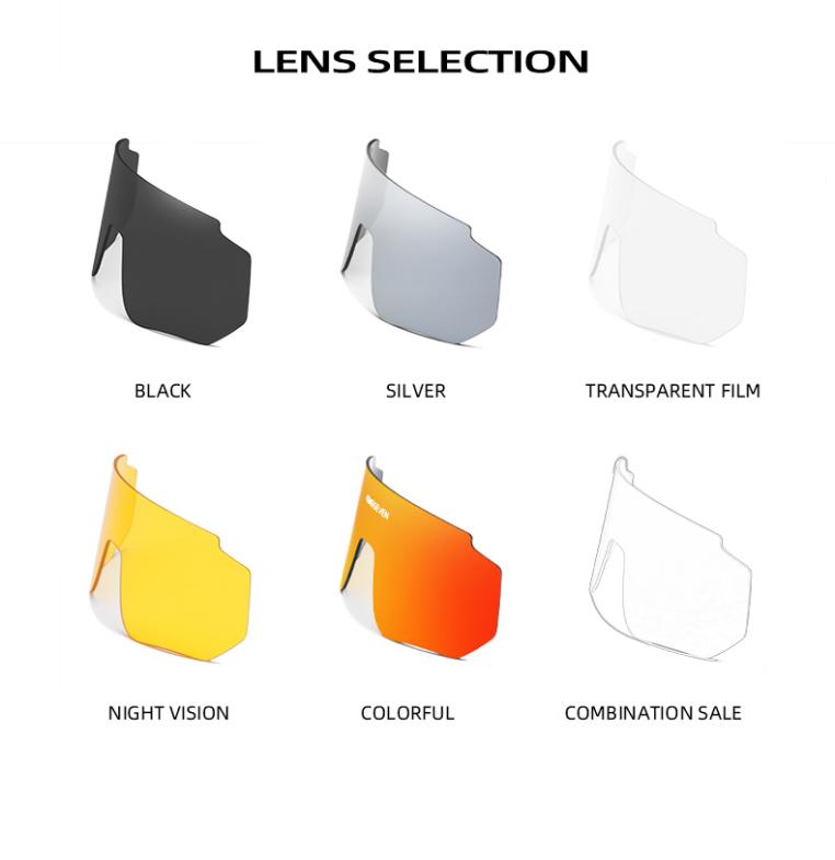 - உயர்-வரையறை UV400 துருவப்படுத்தப்பட்ட பாலிகார்பனேட் லென்ஸ், இது வலுவான ஒளியைத் திறம்படத் தடுக்கும். சாம்பல், கண்ணாடி நிறம், ஃபோட்டோக்ரோமிக், இரவு பார்வை மற்றும் வெளிப்படைத்தன்மை போன்ற பல்வேறு செயல்பாடுகளிலிருந்து லென்ஸைத் தேர்ந்தெடுக்கலாம்.